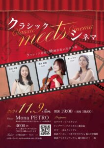 Classic meets Cinema この記事のタイトルとURLをコピーする 開催日: 2025年11月9日 6:00 PM - 10:00 PMカテゴリー: ライブ 波馬朝加(Vn) 吉田真優(Fl) 林めぐみ(Pf) OPEN 18:00 START 19:00 MC ¥4,000- Tweet Share Hatena Pocket RSS feedly Pin it ※SOLD OUT‼Velvet Disco Night 前の記事 GO!WEST 2025~jammin’Zeb Live Tour in 名古屋~ 次の記事
